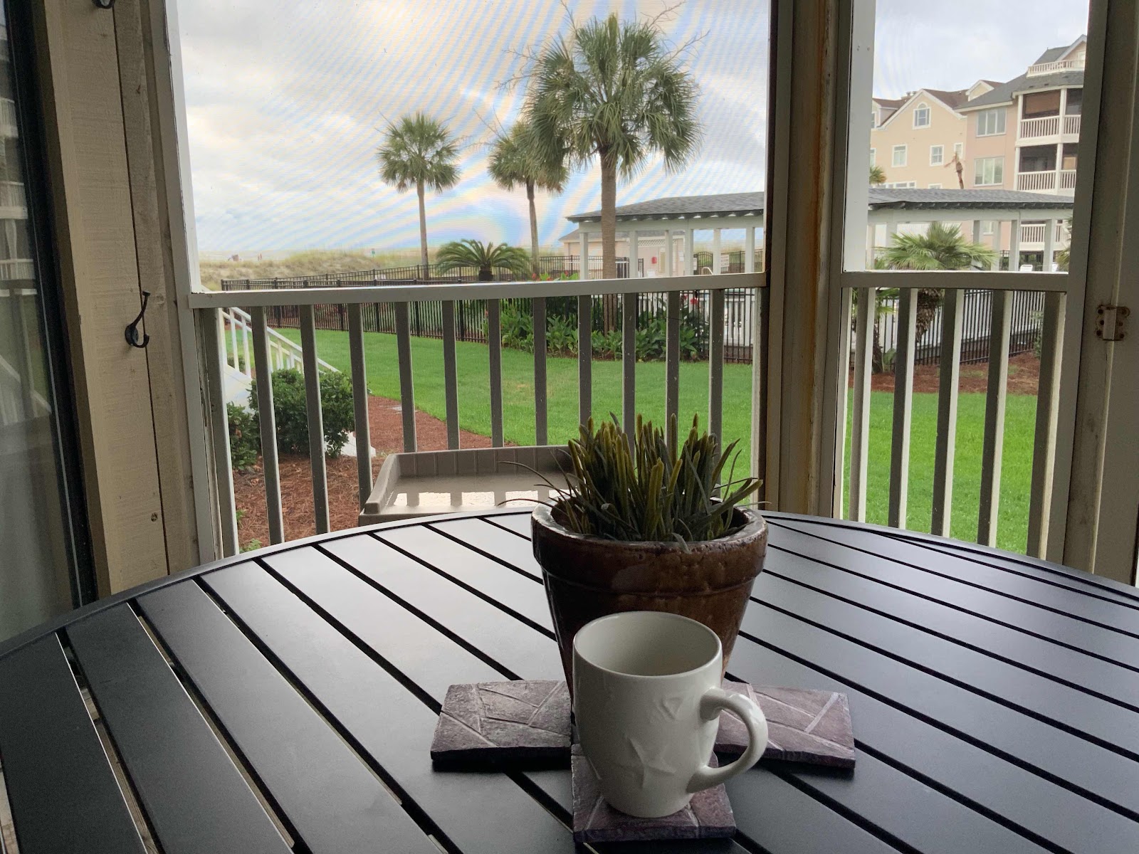 I’m not sure what we will do today. This is supposed to be the only cloudy day of our week. Maybe I’ll use that as an excuse to play the golf course that is right down the street. Dinner last night at Huey’s featured this view...