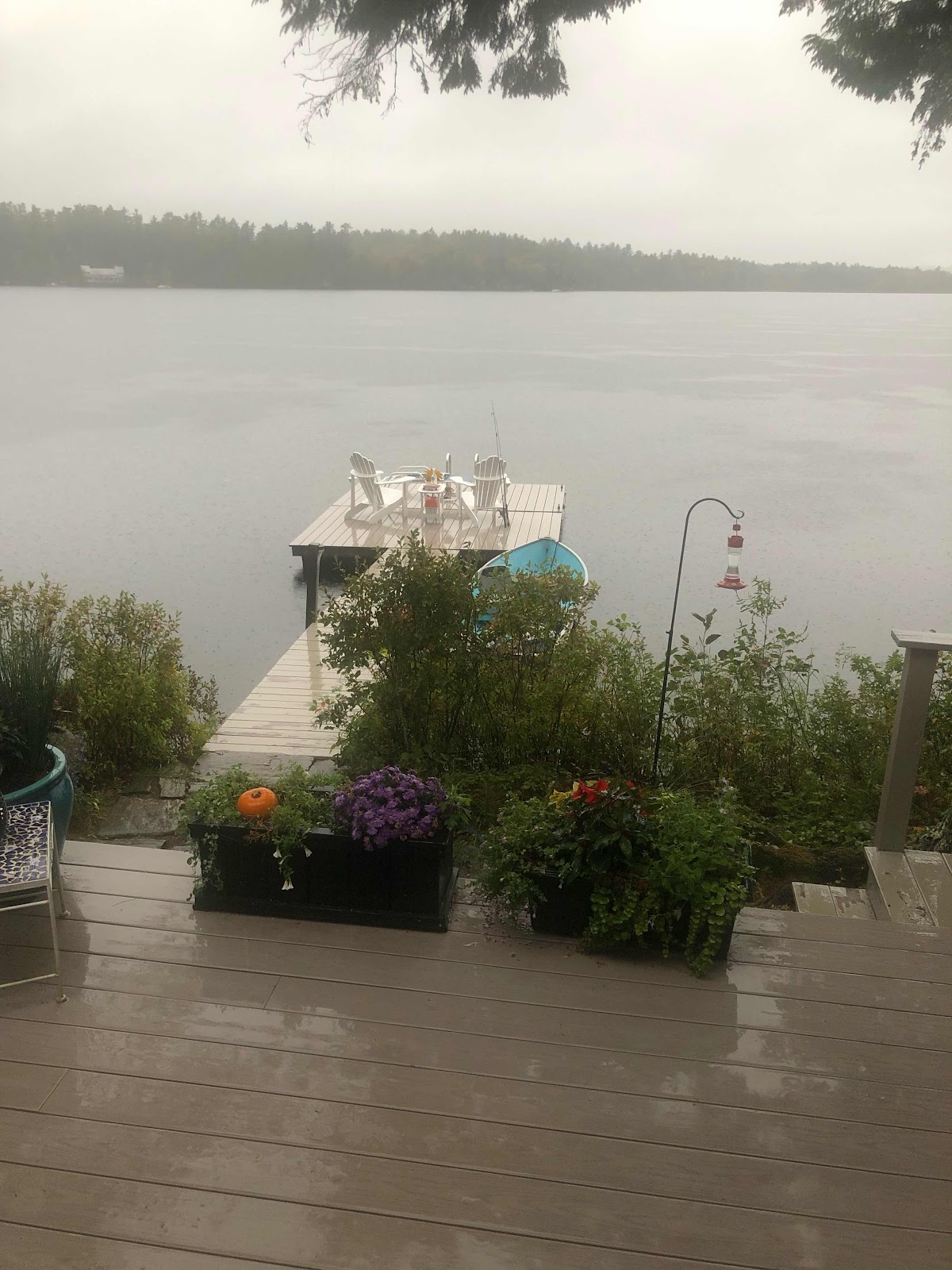 By the time we got back to camp it was really coming down, so the four of us settled down into an afternoon watching the rain pummel the lake, listening to the sounds of it pounding the metal roof, and engaging in a variety of activities. One of us worked remotely for a couple hours, another busied himself playing card games with his mother. I got in some writing.