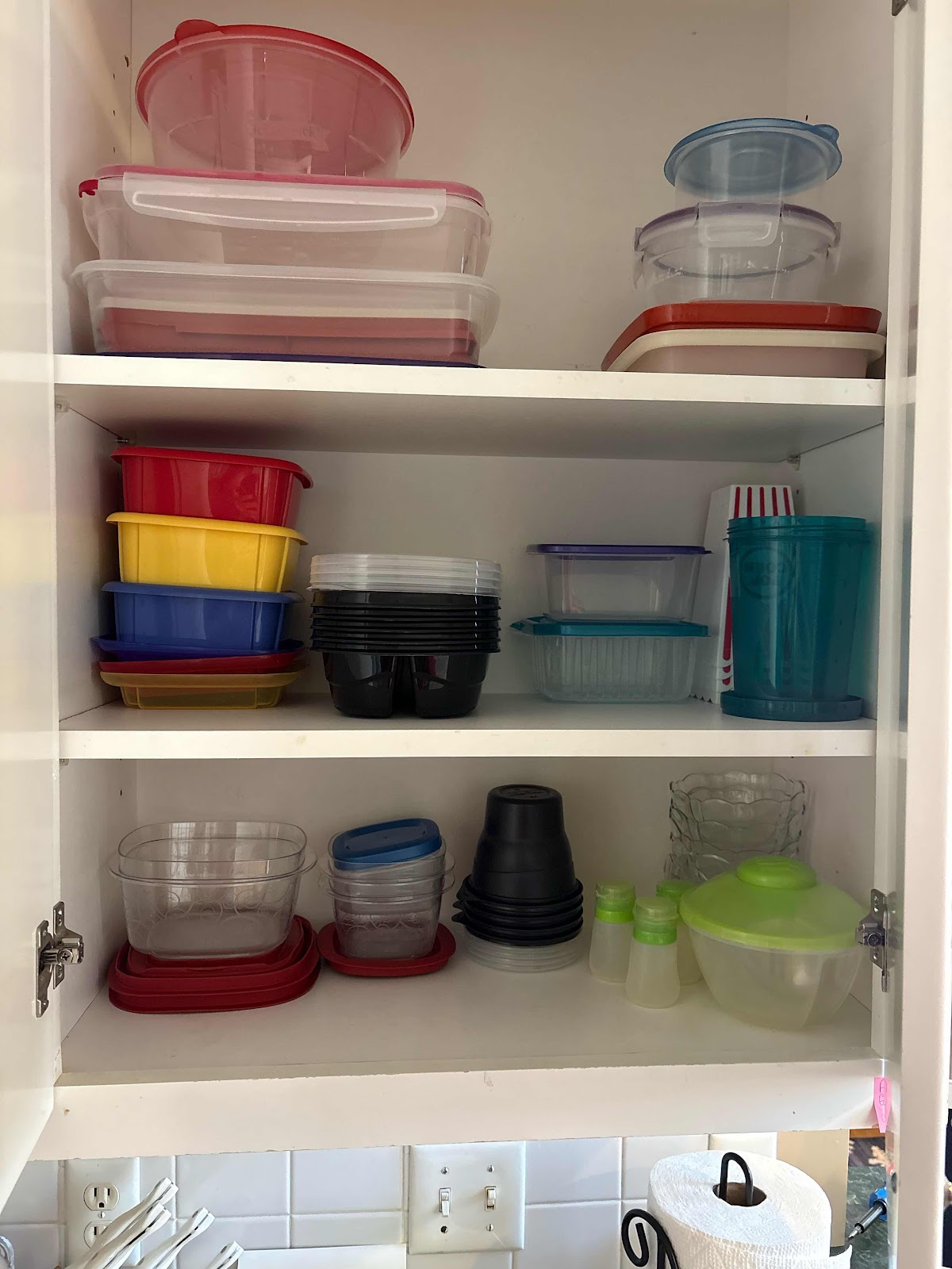 * Took on the out of control plastic container cabinet in our kitchen, discarding any container without a lid and any lid without a container. Threw the useless lids/containers in the recycling and deftly organized what remained after the great purge…