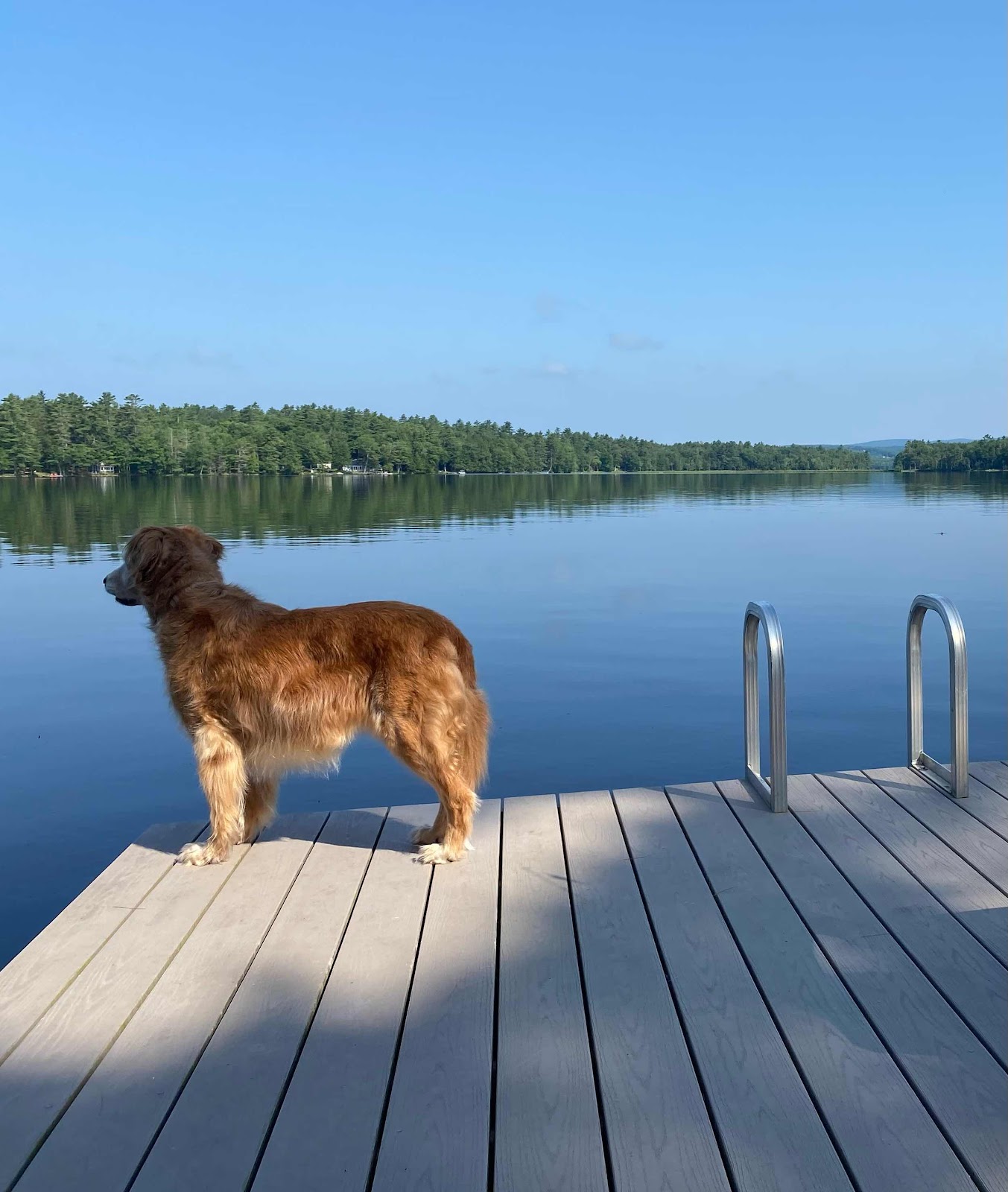 Back at home, when I feed her breakfast she insists on me sitting down before she can eat. I don’t have to even be in the same room, but I must be seated or there will not be any breakfast eating happening in the Dunnevant house. Don’t ask me to explain this phenomenon. It is what it is. Well, here in Maine, Lucy has added a new twist to this particular neurosis…she now refuses to eat until both of us are seated! So for example if it’s just me and Pam is still asleep in our bedroom…nothing. We must apparently both bear seated witness to her breakfast eating ritual.